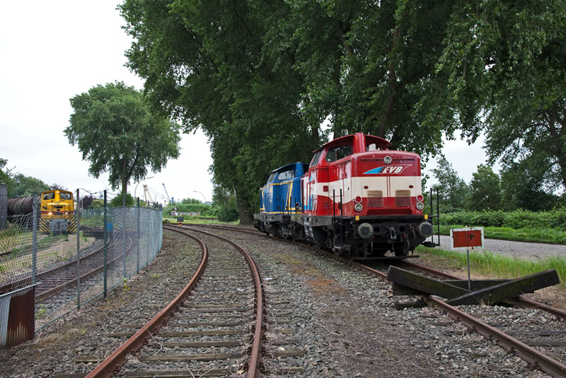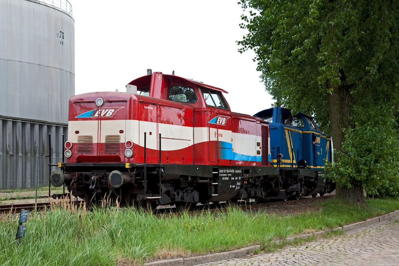 | Die 410 03 der EVB bekam auch noch Gesellschaft einer Schwesterlok in Form der V 1353 der Partnerbahn MWB! Hamburg-Waltershof, 30. Juli 2011 |