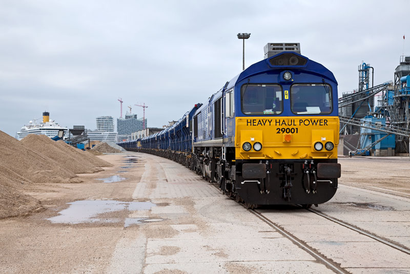 | Die neue 29001 II von Heavy Haul Power International im Hamburger Baustoffterminal. Hamburg | Kirchenpauerkai, 30. Juli 2011 |