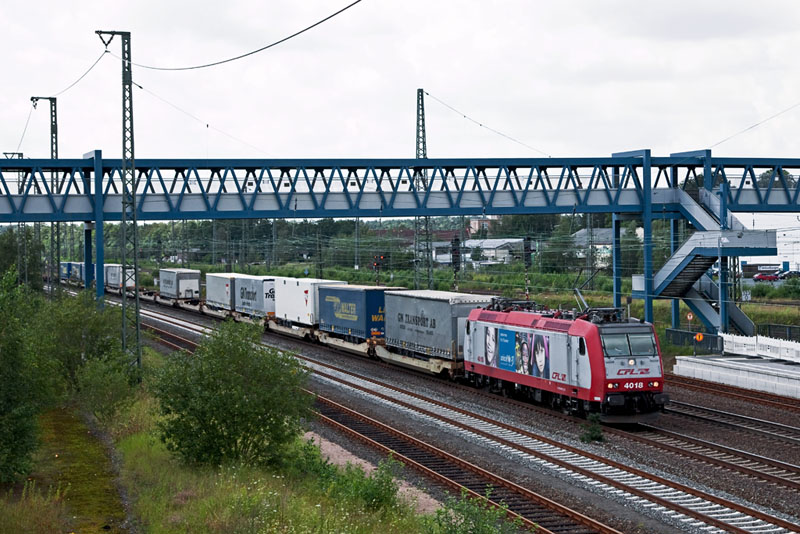 | Der schon recht gut ausgelastete "Bettembourger" der luxemburgischen CFL mit der Lok 4018 "unicef". Buchholz (i.d. Nordheide), 13. August 2011 |