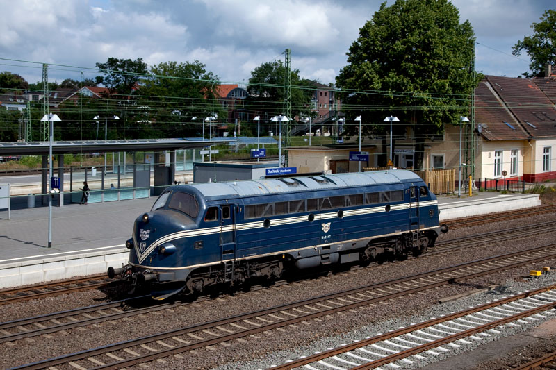 | Wohl zur "Fußpflege" bei der AKN in Kaltenkirchen brummte VT 208 der Taunusbahnen in Richtung Hamburg. Buchholz (i.d. Nordheide), 13. August 2011 |