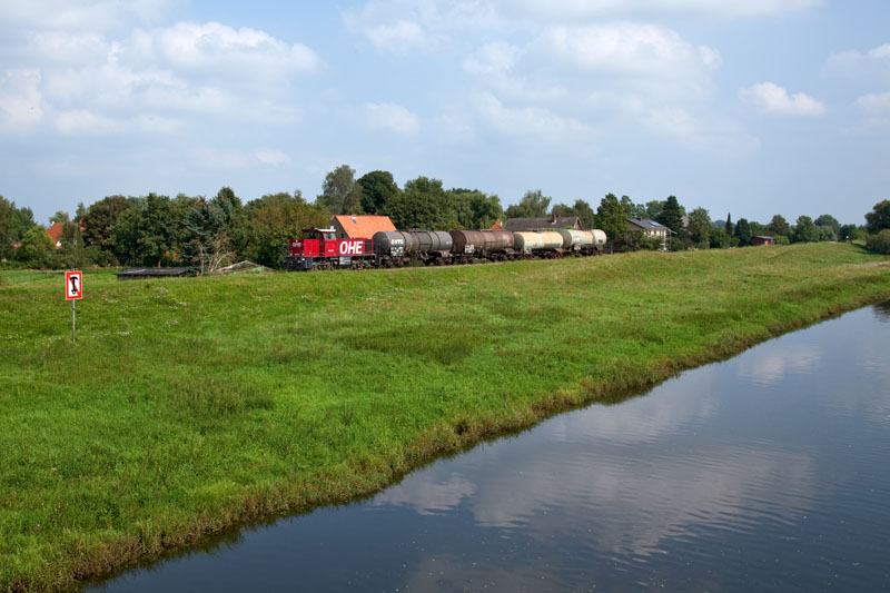 | Die OHE-Lok beim passieren des Ilau-Grabens. Eichholz, 24. August 2011 |