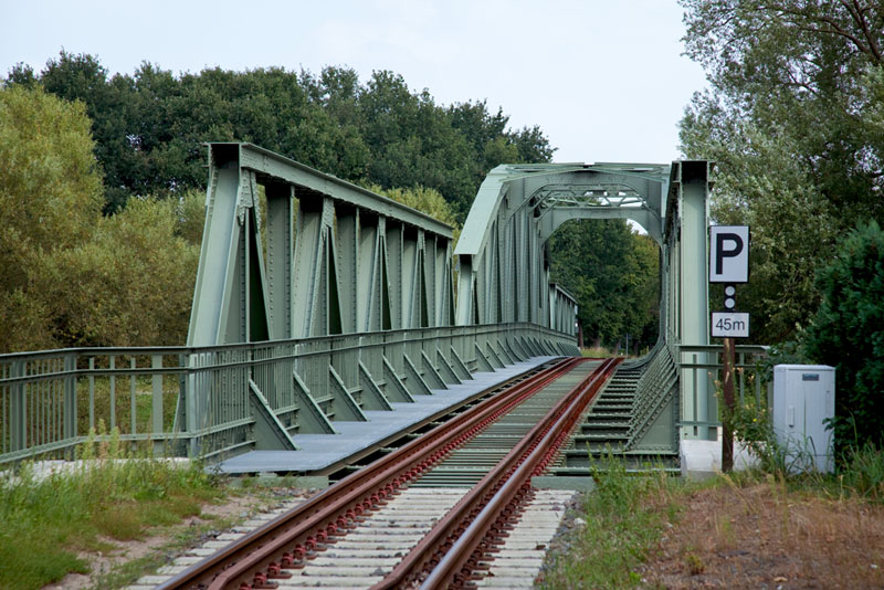 | Die frisch renovierte Nettelbergbrücke über den Ilmenaukanal – eine ehemalige kombinierte Straßen- und Eisenbahnbrücke. Nettelberg, 24. August 2011 |