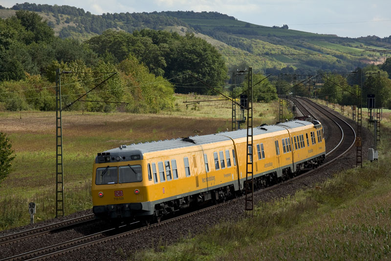 | Eine nette Überraschung: der Schienenprüfzug 719 001/501 kam auch. Staustufe Harrbach, 30. August 2011 |