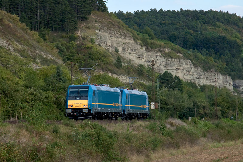 | Zwei neue TRAXX-Lokomotiven für die ungarische Staatsbahn MAV – die 480 010 und 009 auf dem Weg in die neue Heimat. Karlstadt, 31. August 2011 |