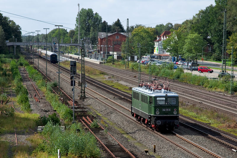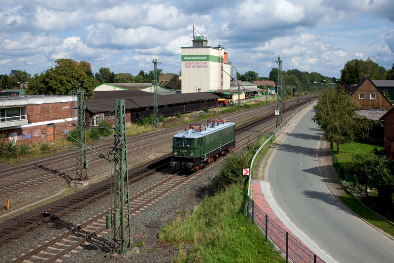 | Nun aber durfte die schicke E42 151 auf dem Gegengleis umsetzen. Tostedt, 11. September 2011 |