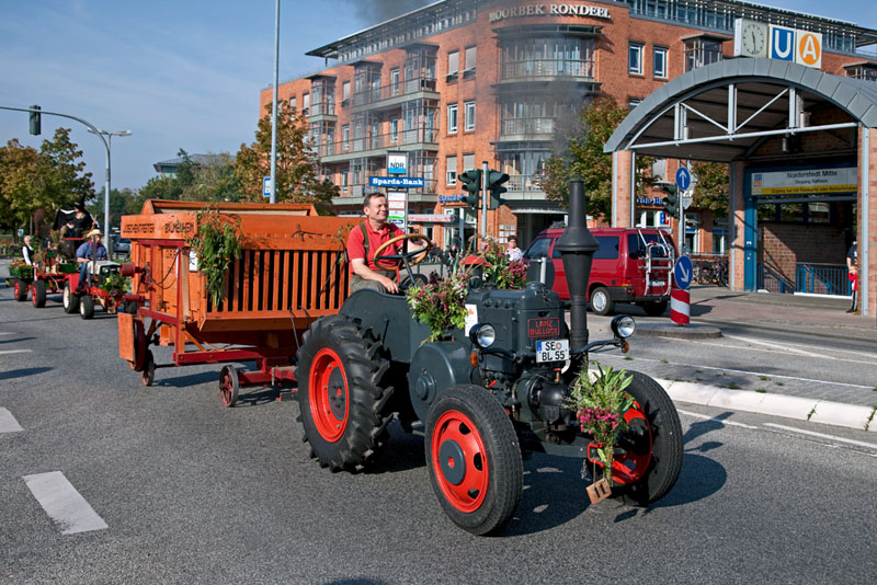 | Passend war auch dieser Erntedankfest-Umzug mit historischen Trekkern, wie dieser LANZ BULLDOG. Norderstedt Mitte, 2. Oktober 2011 |