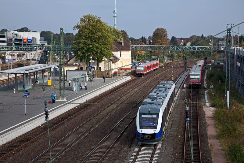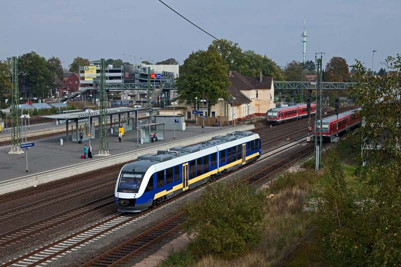 | Noch ein Blick von oben auf den anstehenden Generationswechsel auf der Heidebahn. Buchholz (i.d. Nordheide), 3. Oktober 2011 |