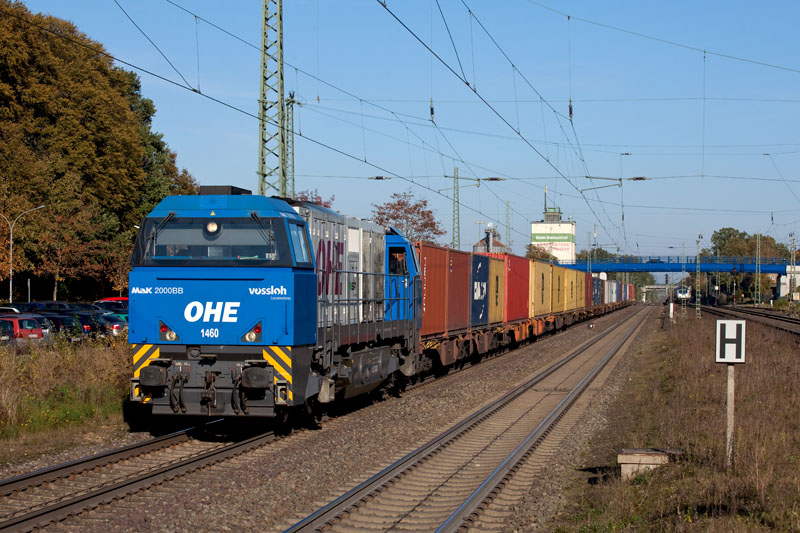 | Eine G2000BB der OHE – die 1460 vor einem Containerzug! Tostedt, 22. Oktober 2011 |