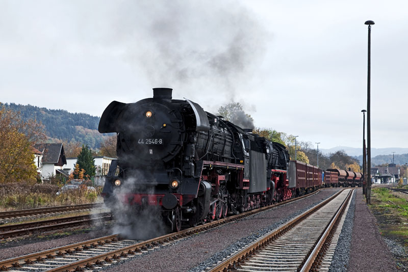 | Die 44 2546 der Nördlinger, auch ein ehemaliger Reichsbahn-Jumbo. Bad Salzungen, 27. Oktober 2011 |