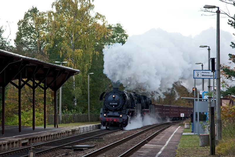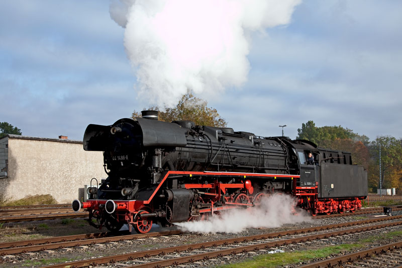 | Ein "Jumbo"! Die ehemalige Reichsbahn 44 1486 der Eisenbahnfreunde Staßfurt. Bad Salzungen, 27. Oktober 2011 |