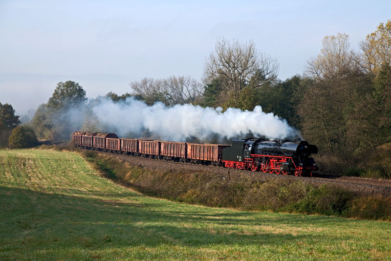 | Einen kurzen Güterzug hatte die 41 1144 nach Eisenach zu bringen. Bei Unterrohn, 27. Oktober 2011 |