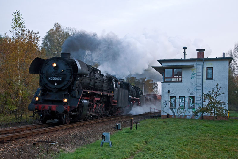 | Mit leichter Last kurbelte die 44 2546 in Richtung Bad Salzungen… Bei Breitungen, 28. Oktober 2011 |