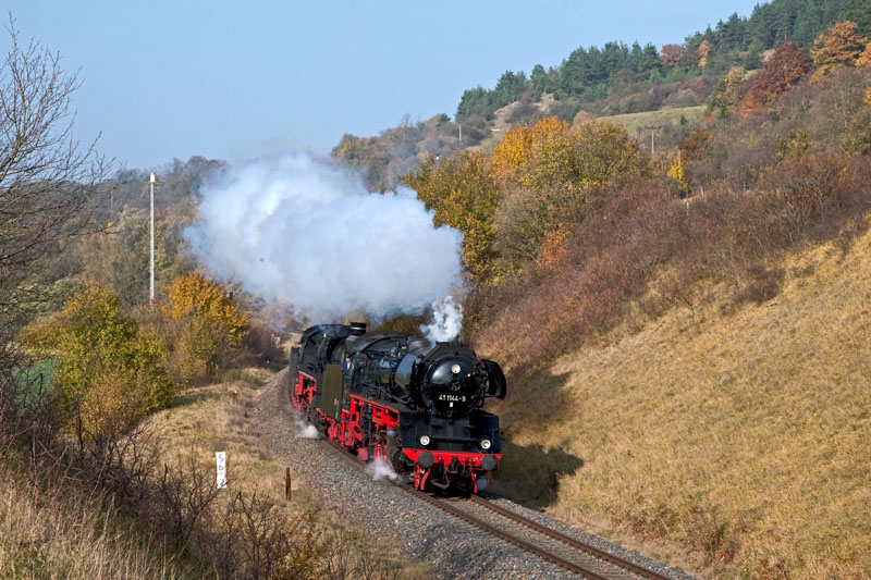 | Die 41 1144 mal voll von der Seite im besten Licht. Bei Bad Salzungen, 28. Oktober 2011 |