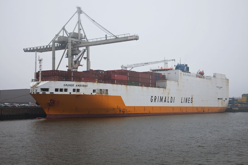 | Die GRANDE AMBURGO, ein Ro/Ro-Schiff der GRIMALDI LINES. Hamburg Oswaldkai, 9. November 2011 |