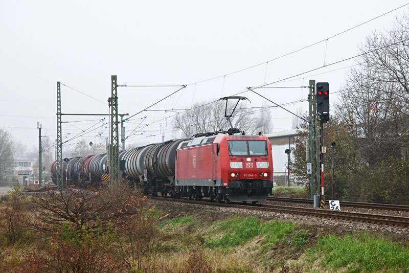 | Fast im Blockabstand kam dieser Kesselwagenzug mit der 185 044-5. Hamburg-Hohe Schaar, 18. November 2011 |