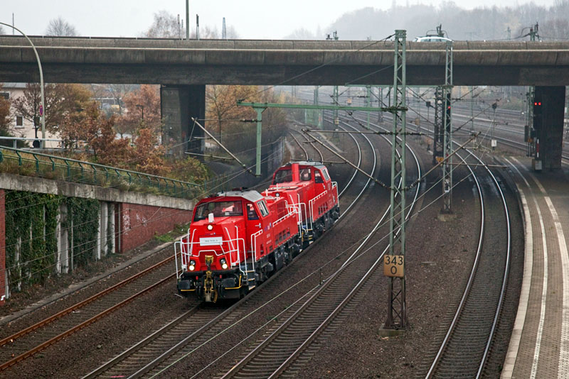 | Zwei GRAVTA's – die Northrail 260 510-3 zog die DB 261 030-1 in Richtung Norden. Hamburg-Harburg, 18. November 2011 |