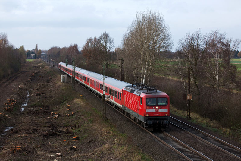 | Der HSV-Fußballsonderzug von Kiel (!) nach Hannover mit der 112 179-7. Borstel, 26. November 2011 |