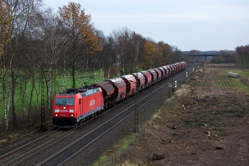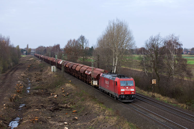 | Einen leeren Kalizug brachte die 185 255-7 wahrscheinlich in das Gerstunger Revier. Borstel, 26. November 2011 |