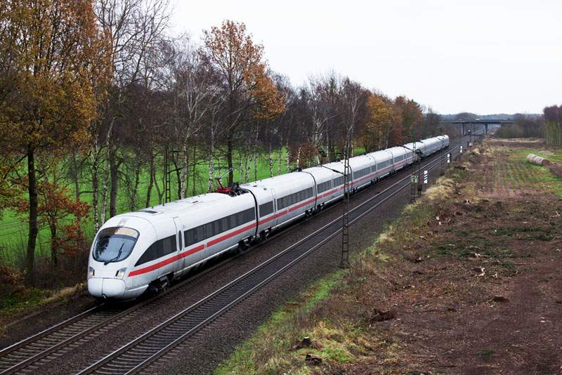 | Ein 411er-Doppel nach Hamburg – es fuhren die Triebzüge 411 092 und 411 081. Borstel, 26. November 2011 |
