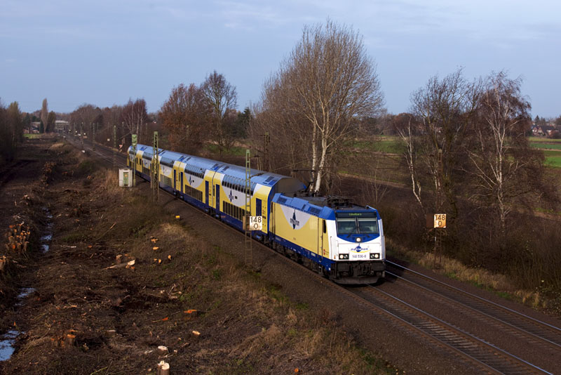 | Ein metronom Regional nach Lüneburg mit der 146 536-8. Borstel, 26. November 2011 |