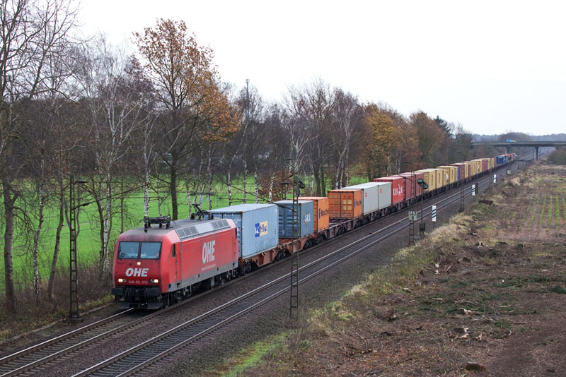 | Auch die OHE 145-CL 013 kam mit einem Containerzug. Borstel, 26. November 2011 |