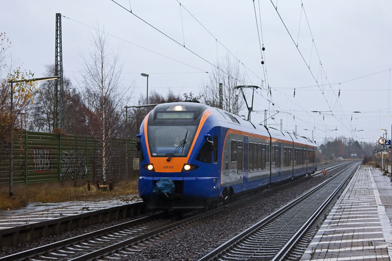 | Ein CANTUS-FLIRT auf Sonderfahrt im Norden! Als DPN 81482 fuhr 428 053 von Göttingen nach Lübeck. Winsen (Luhe), 3. Dezember 2011 |