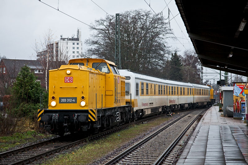 | Den "beinlahmen" Schienenprüfzug 719 101 brachten 203 312-4 und… Winsen (Luhe), 3. Dezember 2011 |