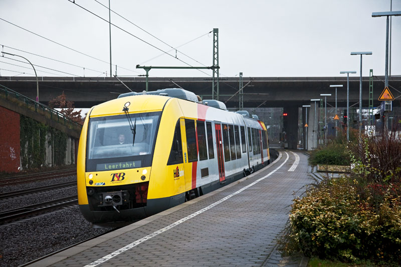 | Wieder eins der TSB-LINTs, der VT 205, auf dem Weg zur "Fußpflege" bei der AKN in Kaltenkirchen. Hamburg-Harburg, 3. Dezember 2011 |