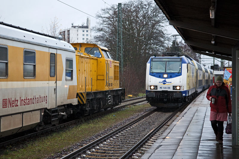 | Einfahrt für den metronom nach Uelzen mit der ME 146-06. Winsen (Luhe), 3. Dezember 2011 |