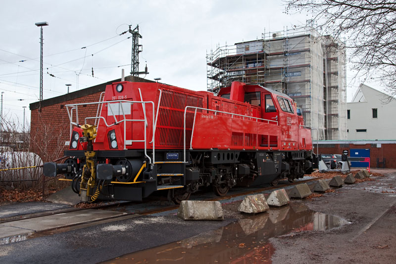 | Die VOITH Gravita 10 BB namens 261 028-5 der DB Schenker Rail. RBF Hamburg Süd, 4. Dezember 2011 |
