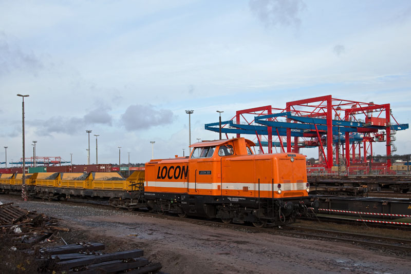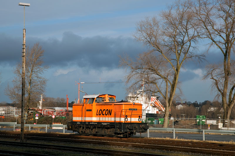 | Die neue LOCON 205 – die ehemalige 212 263-8 der Bundesbahn – war im Arbeitszugdienst aktiv. Hamburg-Waltershof, 4. Dezember 2011 |