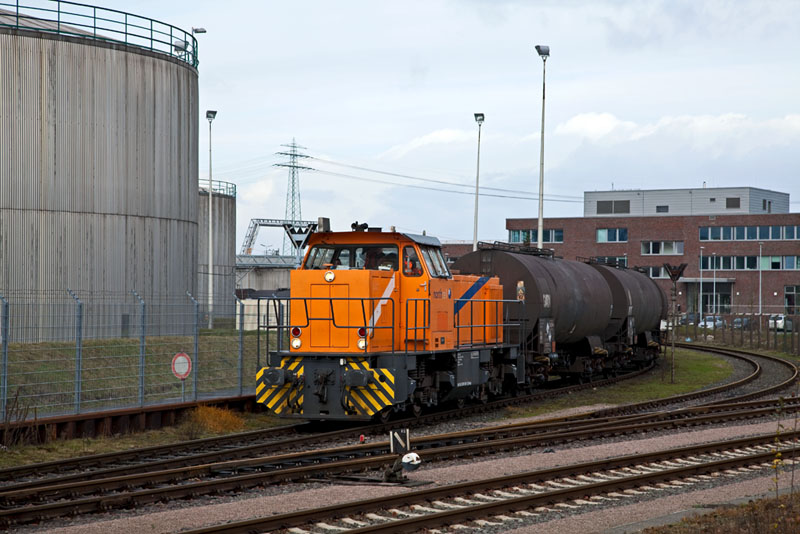 | Am Anschluss VOPAK war die Northrail 274 104-5 (ex OHE 150007) mit ein paar Kesselwagen zugange. Hamburg-Steinwerder, 4. Dezember 2011 |