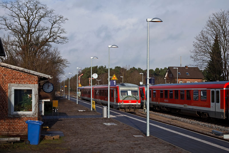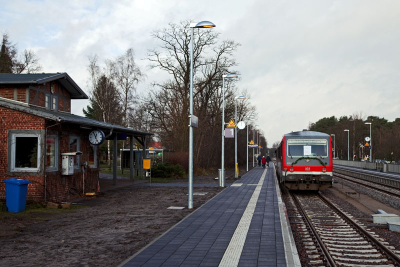 | Einfahrende Regionalbahn 14764 nach Buchholz (i.d. Nordheide)… Handeloh, 10. Dezember 2011 |