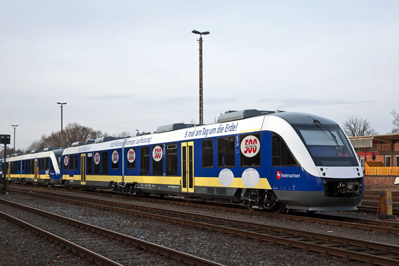 | Der 500. CORADIA LINT41-Triebwagen von ALSTOM. Soltau (Han), 11. Dezember 2011 |