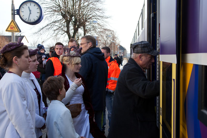 | Die Königin Nina und Gefolgschaft enterten den wärmeren Triebwagen… Soltau (Han), 11. Dezember 2011 |