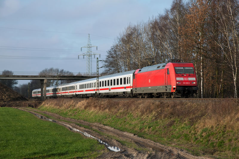 | Einen InterCity nach Hannover zog die 101 138-6. Grevelau, 31. Dezember 2011 |