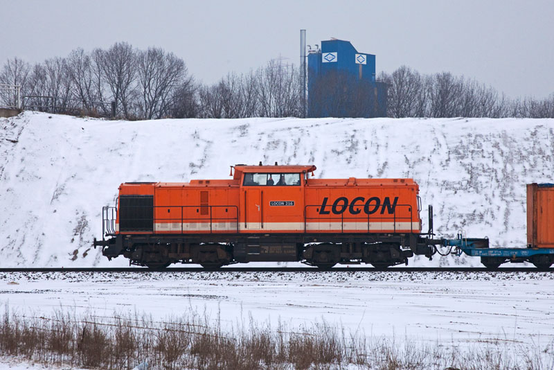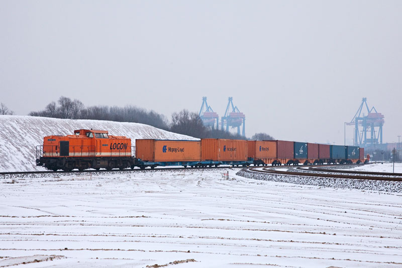 | Die LOCON 216 schob eine Containerwagenschlange in das CTA. Hamburg-Waltershof, 29. Januar 2012 |