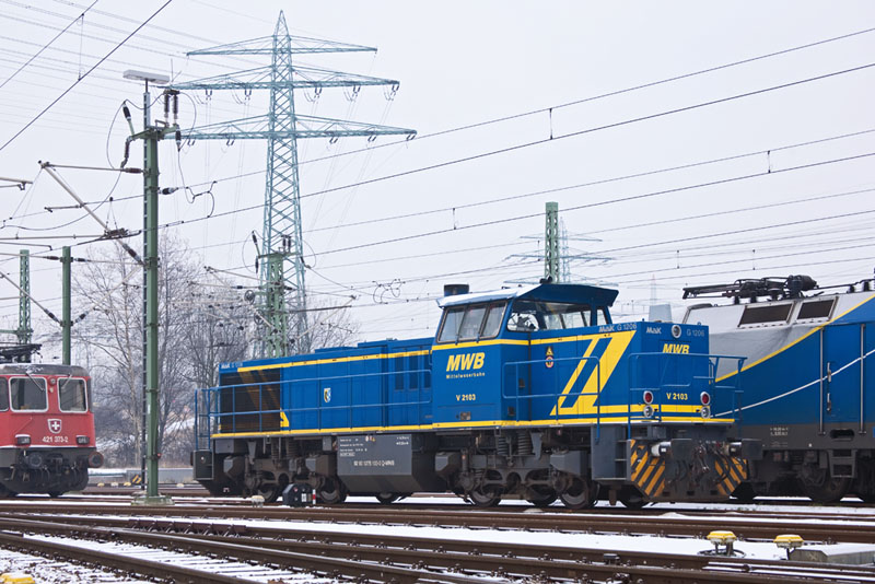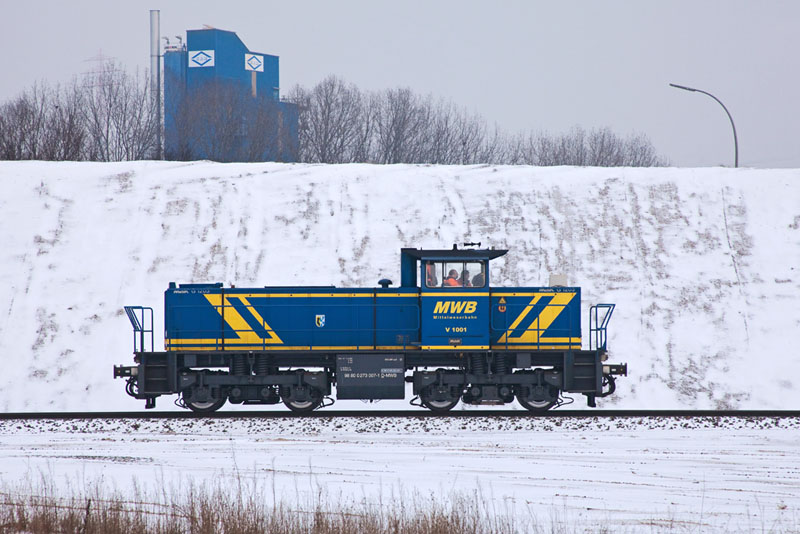 | Die V 2103 – eine MaK G 1206 der Mittelweserbahn. Hamburg-Waltershof, 29. Januar 2012 |