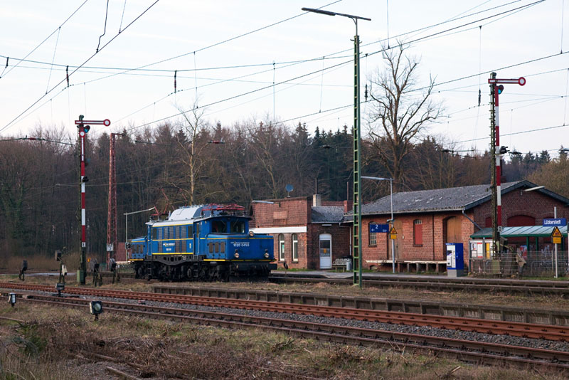 | Endlich, mit fast sechs Stunden Verspätung kam das "Reptil" – die 1020 041 der Mittelweserbahn! Lübberstedt, 27. März 2012 |