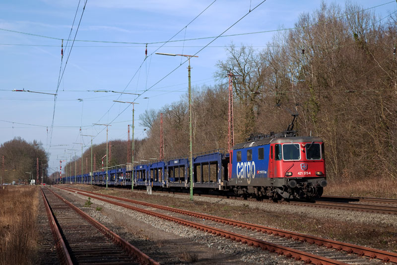 | Auch die 421 372-4 kam mit einem Autologistikzug von Bremerhaven gen Süden. Lübberstedt, 27. März 2012 |
