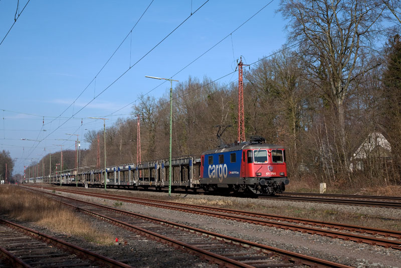 | Einen weiteren Autologistikzug von Bremerhaven hatte die 421 376-5 am Haken. Lübberstedt, 27. März 2012 |