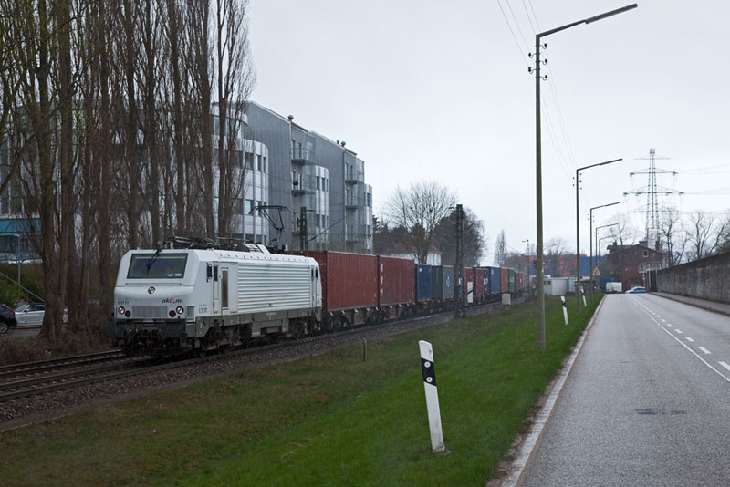 | Donnerwetter, gleich FÜNF HGK-Elloks vor einem Zug! Hamburg-Hohe Schaar, 1. April 2012 |