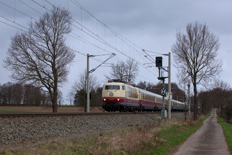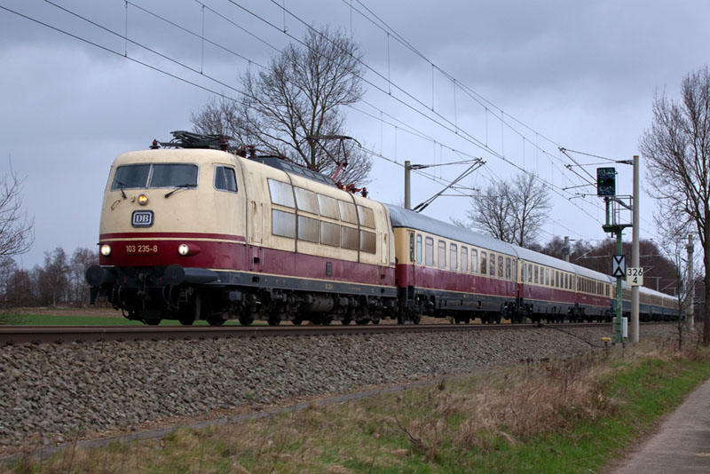 | …mit der schönen 103 235-8 auf dem Weg nach Köln. Buensen, 1. April 2012 |