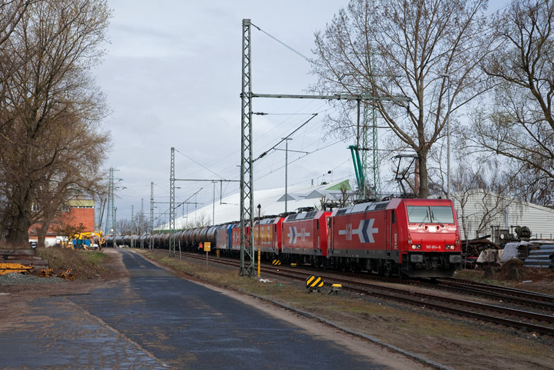 | Die 185 604-6 schleppte auch 145-CL 012, 185 586-5, 185 588-1 und 185 523-8. Hamburg-Hohe Schaar, 1. April 2012 |