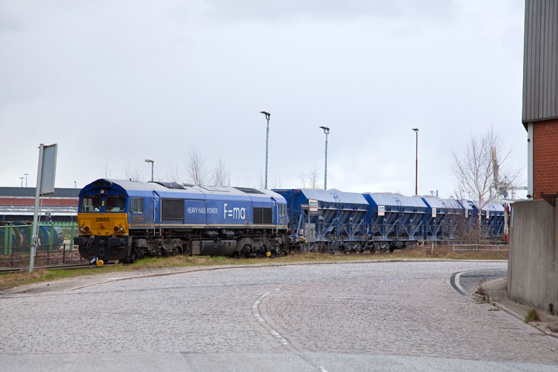 | Vom RBF Hamburg Süd kam dieser HHPI-Baustoffzug mit der 29005. Hamburg-HafenCity, 1. April 2012 |
