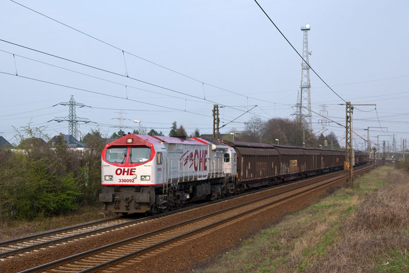 | Schon von weitem konnte man den "Red Tiger" 330092 der OHE hören und spüren – kollossal! Ahlten, 3. April 2012 |