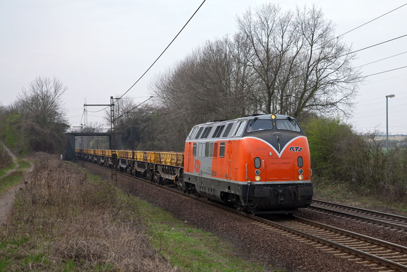 | Aber ja! Die starke V200 namens 221 134-0 der RTS mit einem Bauzug! Ahlten, 3. April 2012 |