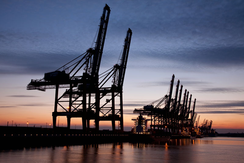 | Österliches Sonnenuntergangsstimmung bei Eurokai. Hamburg-Waltershof, 8. April 2012 |