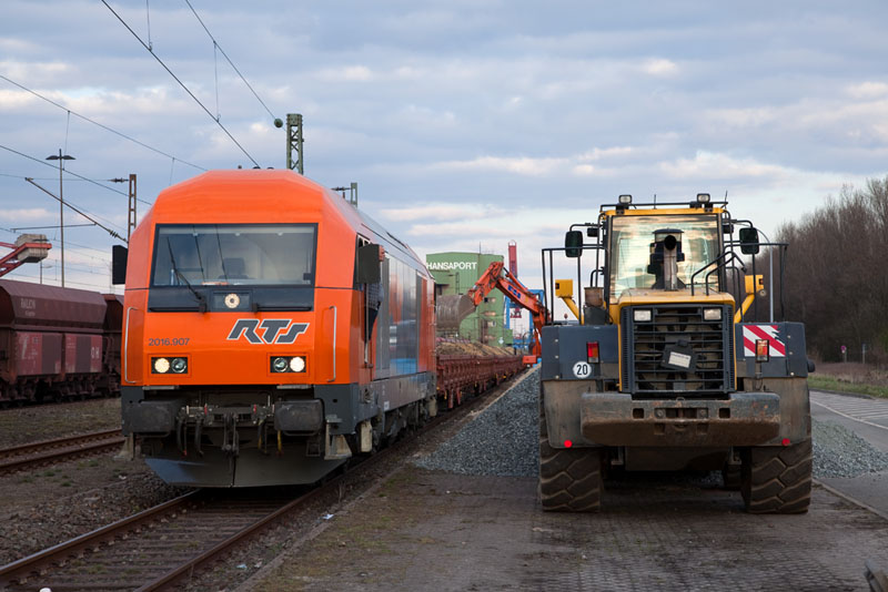 | Im Bereich Hansaport rangierte die 2016.907 einen Bauzug. Hamburg-Waltershof, 8. April 2012 |