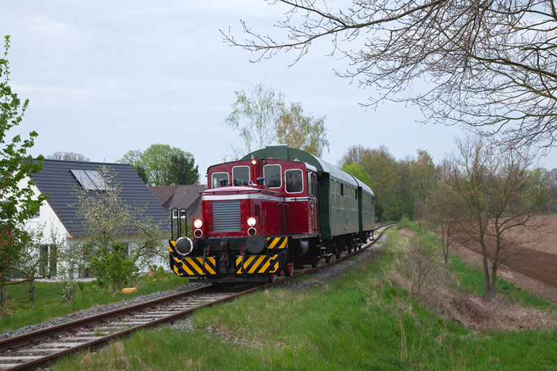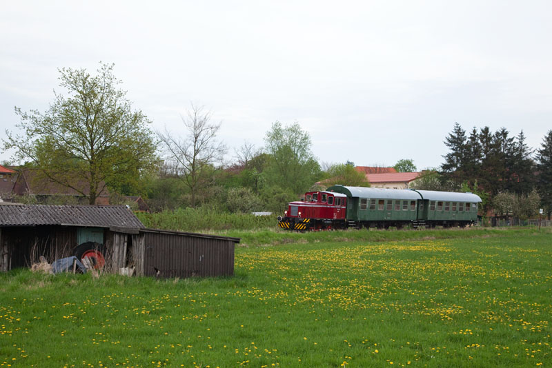 | Wenig später ist der MaK GDT 0518 wieder auf dem Weg nach Bleckede und wird sogleich die Vier dort aufnehmen. Rullstorf, 29. April 2012 |